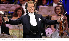 ReplyDeleteI agree with everything Anonymous said including the bit about the crabby journo. I think Aussie journo's don't know what to make of Andre and so they make snide remarks. But what a night (and I'm talking Wednesday night now) Wish I was going to all his other concerts. oh well I can dream.